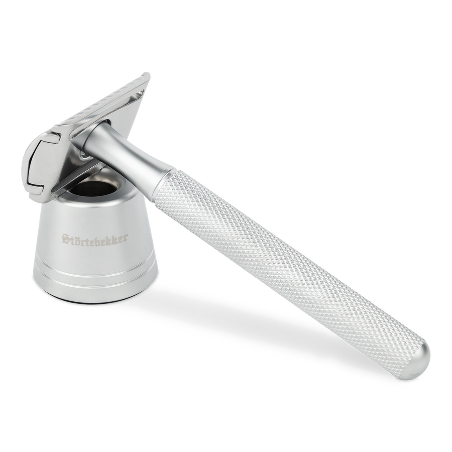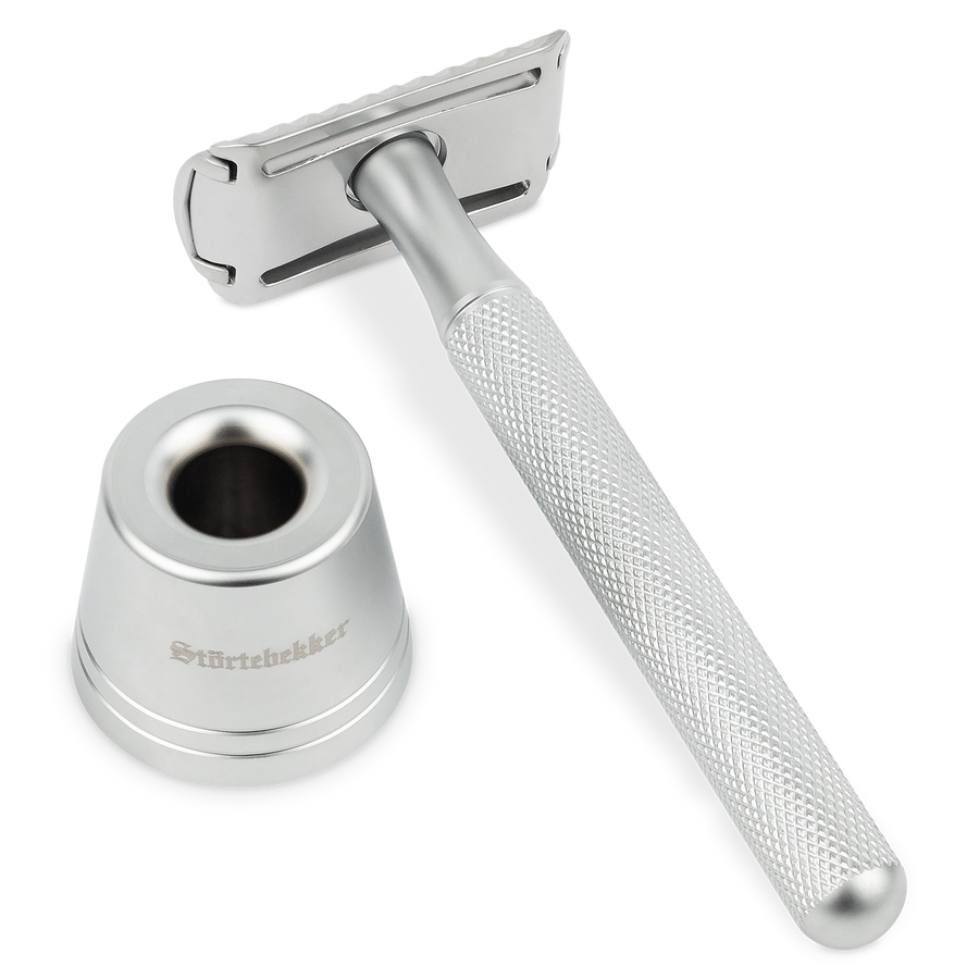 Entdecke das neue Störtebekker Rasierhobel-Set ‘Oslo’. Die perfekte Kombination aus klassischer Rasurkunst und modernem Design! Das Set enthält einen hochwertigen Rasierhobel im edlen, matten Finish sowie den praktischen kleinen Rasierständer passend dazu ebenfalls in matt, der für eine sichere und hygienische Aufbewahrung sorgt.