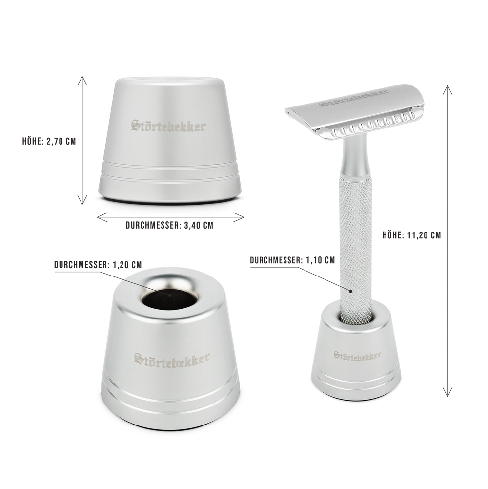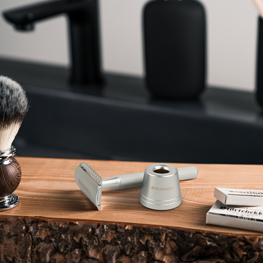 Mit dem Rasierständer kannst Du Deinen Rasierhobel aufstellen. Dadurch kann er besser und hygienisch trocknen und ist perfekt vorbereitet für die nächste Rasur.