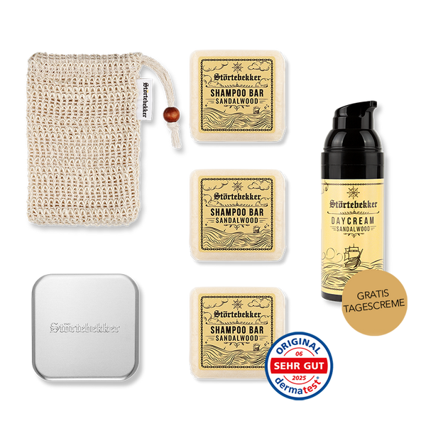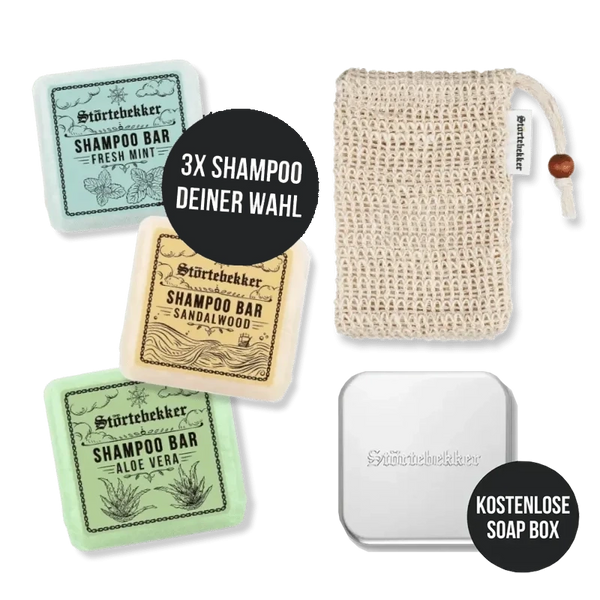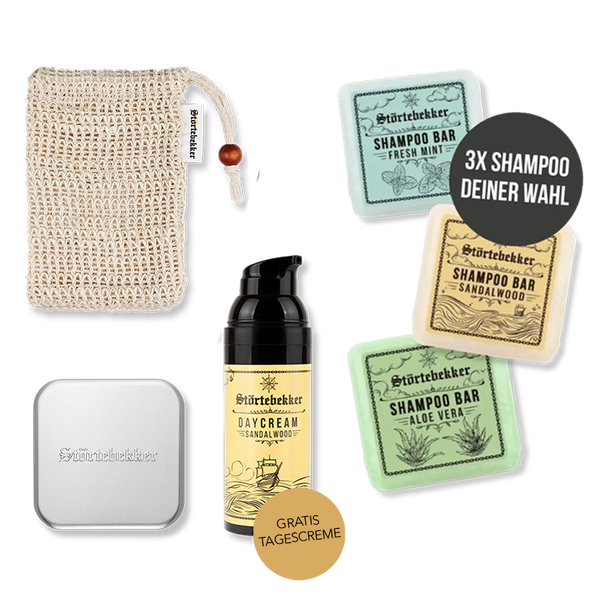 3 x Festes Shampoo nach Wahl, praktische Aufbewahrung und pflegende Tagescreme