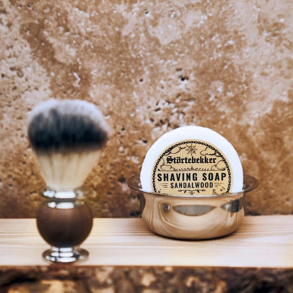 Shaving brush, stainless steel bowl, soap