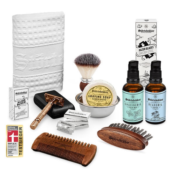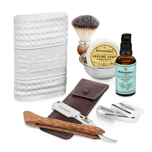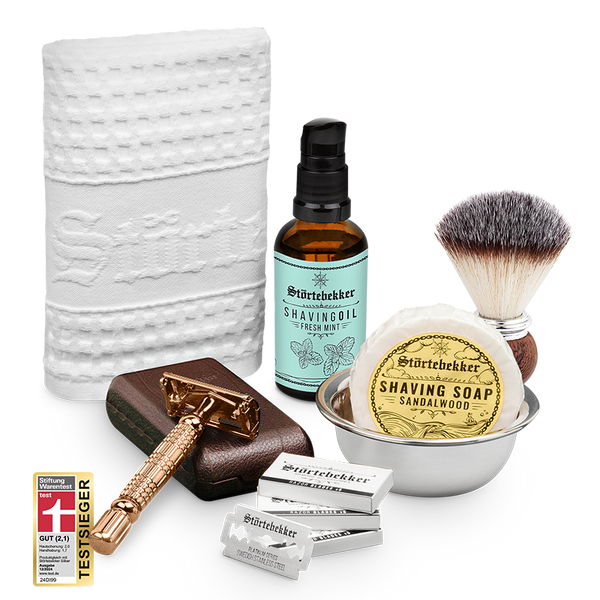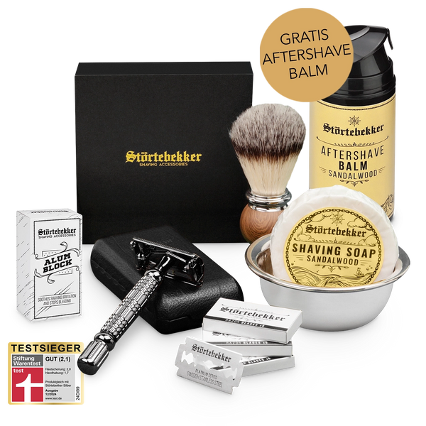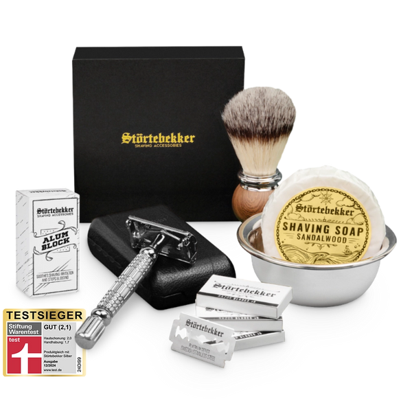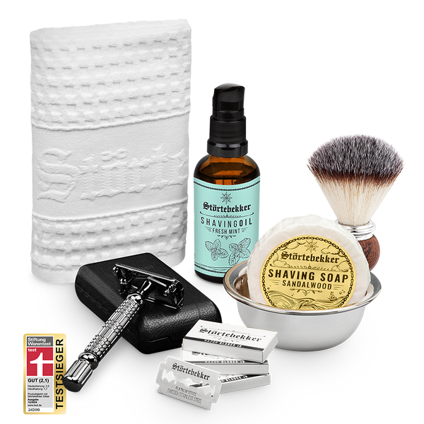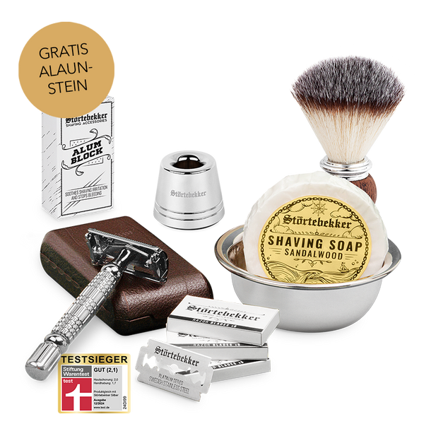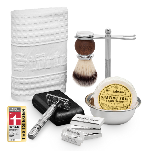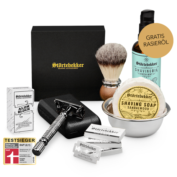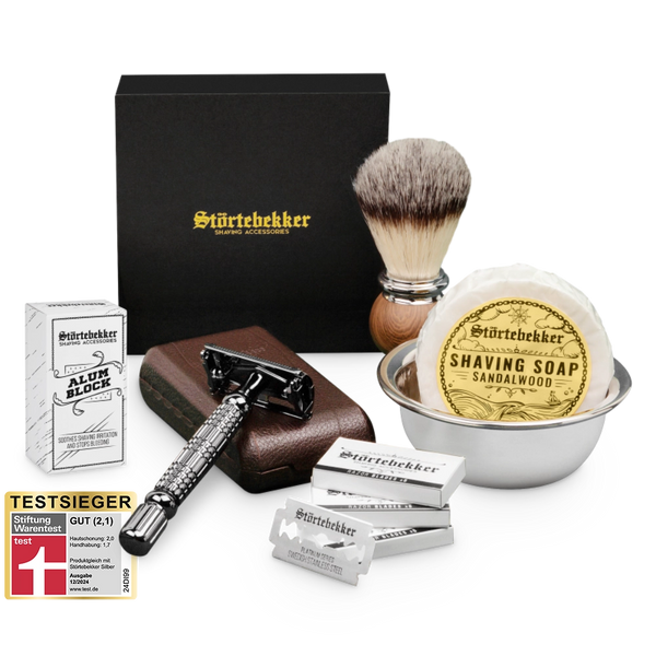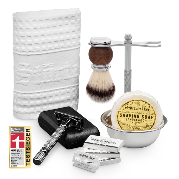 High-quality razor set incl. blades, brush, bowl and soap