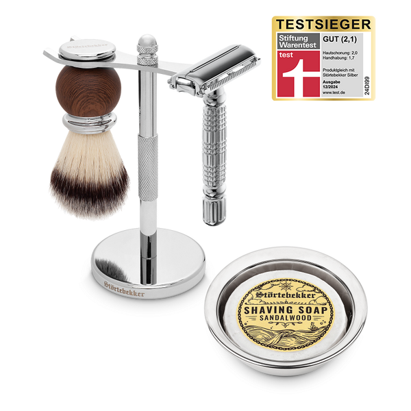 High-quality shaving stand set incl. safety razor and small shaving stand
