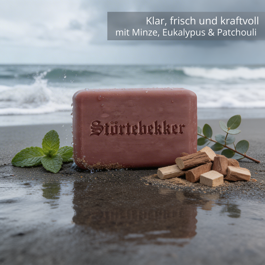 Umstieg auf das feste Shampoo von Störtebekker: Mit natürlichen Inhaltsstoffen, frei von Chemie, mit beruhigendem und frischem Duft.