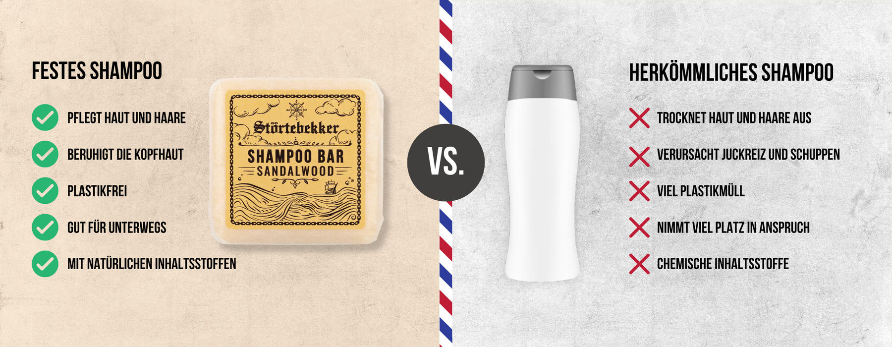 Umstieg auf das feste Shampoo von Störtebekker: natürliche Inhaltsstoffe, frei von Chemie, mit beruhigendem und frischem Duft.