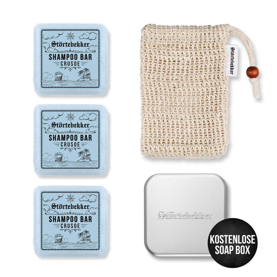 Umstieg auf das feste Shampoo von Störtebekker: natürliche Inhaltsstoffe, frei von Chemie, mit beruhigendem und frischem Duft.