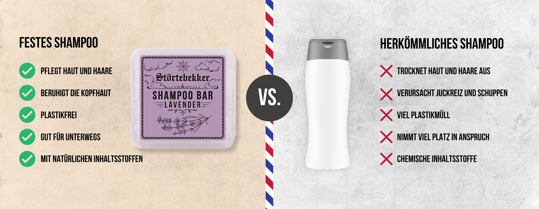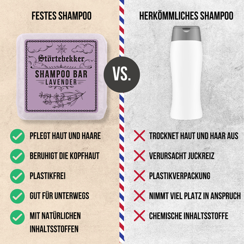 Umstieg auf das feste Shampoo von Störtebekker: natürliche Inhaltsstoffe, frei von Chemie, mit beruhigendem und frischem Duft.