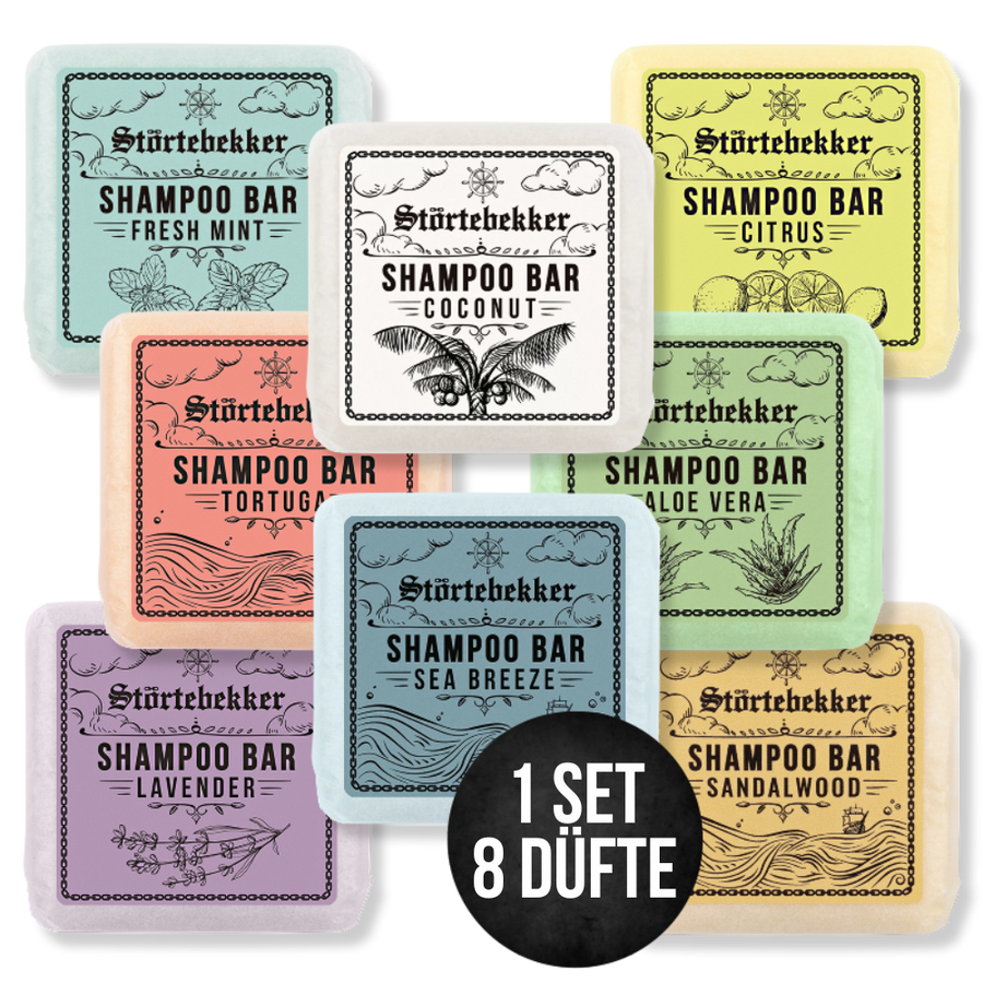 Unser festes Shampoo reinigt Deine Haare, wirkt erfrischend und hinterlässt einen angenehmen Duft. Für alle, die sich nicht entscheiden können, bieten wir hier unser aktuelles Probierset mit 8 verschiedenen, herrlich frischen Düften an: Sandelholz, Aloe Vera, Fresh Mint, Kokos, Sea Breeze, Lavendel, Citrus und Tortuga. Das Haar fühlt sich nach der Dusche genau so an, wie Du es haben möchtest. Die natürlichen Inhaltsstoffe pflegen Dein Haar intensiv und machen es leicht kämmbar und nicht fettend.
