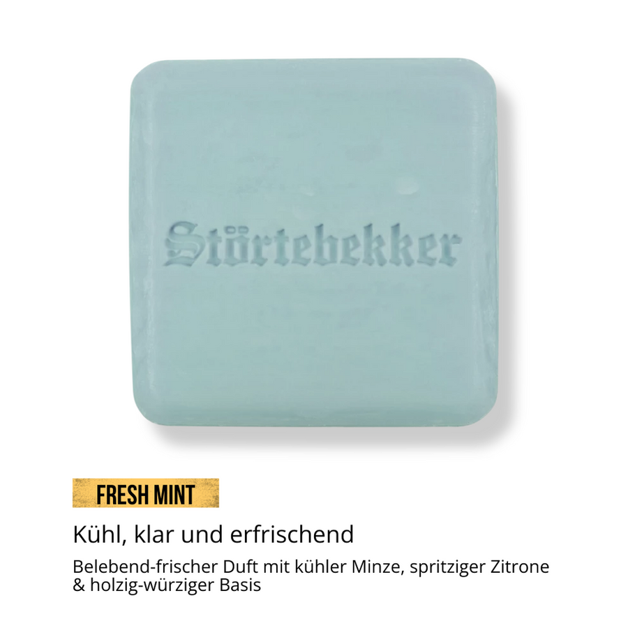 Umstieg auf das feste Shampoo von Störtebekker: natürliche Inhaltsstoffe, frei von Chemie, mit beruhigendem und frischem Duft.